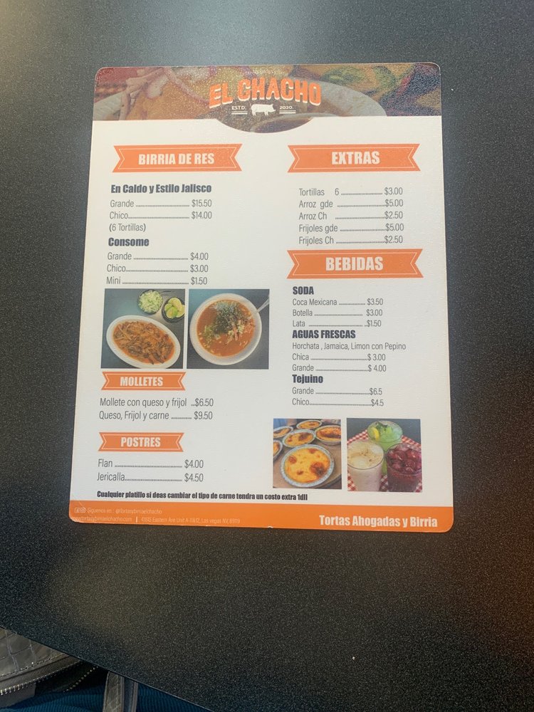 Tortas Ahogadas y Birria El Chacho offers a taste of authentic Mexican cuisine in Las Vegas. Their menu features specialties like the flavorful Quesabirria and the unique Torta Ahogada. Customers rave about the birria quesadilla, birria tacos, and the ahogado potato tacos, all bursting with authentic flavors. The restaurant's clean and simple ambiance, friendly staff, and authentic Guadalajara flavors create a memorable dining experience. Whether you're craving traditional birria, tacos de canasta, or tortas ahogadas, this spot comes highly recommended. Don't miss out on trying their delicious horchata and refreshing agua frescas. This establishment exudes genuine Mexican charm and delivers a truly satisfying culinary experience.